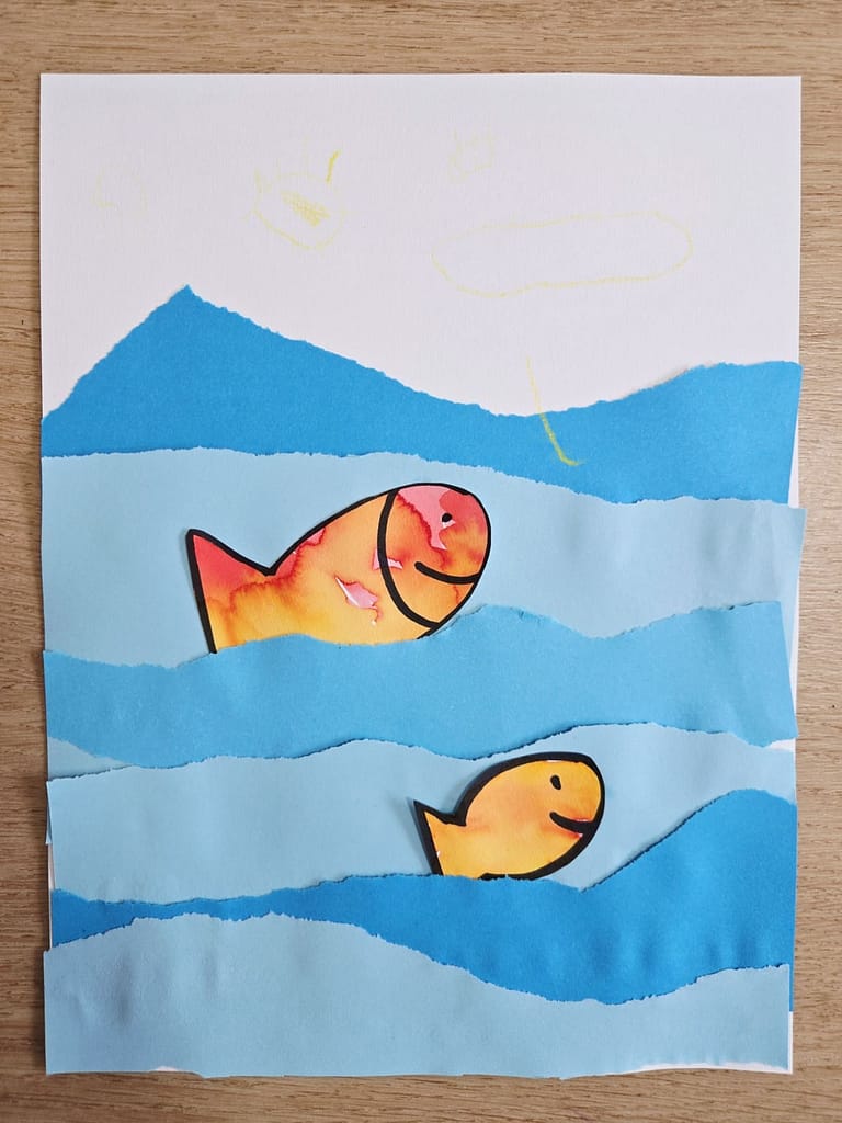 Les petits poissons dans l’eau Papier déchiré, encre colorée, poissons rigolos… Cette activité créative autour de la mer, idéale pour un enfant de 2 à 4 ans, est une invitation à plonger dans l’univers marin, en explorant différentes techniques artistiques…