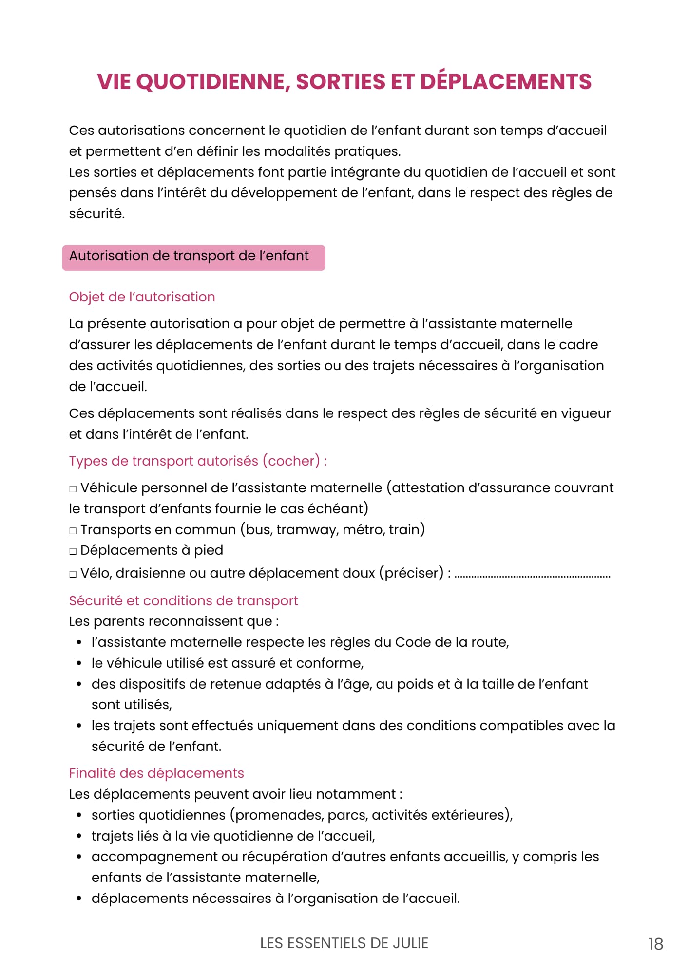 Il s’agit d’un document pratique, destiné à faciliter l’organisation et la communication entre les parents et l’assistante maternelle.