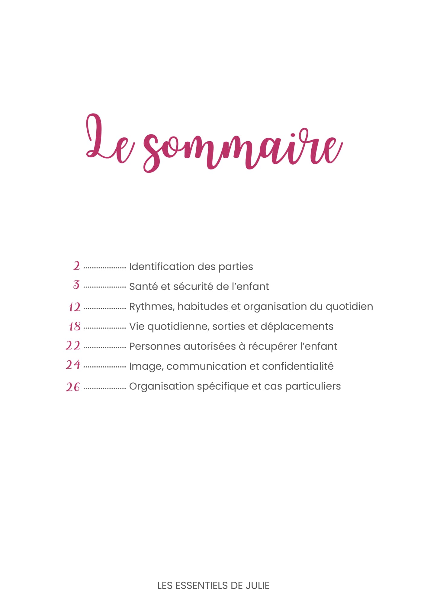 Il permet de centraliser les informations essentielles concernant l’enfant et son quotidien, sans remplacer le contrat de travail ni les obligations légales.